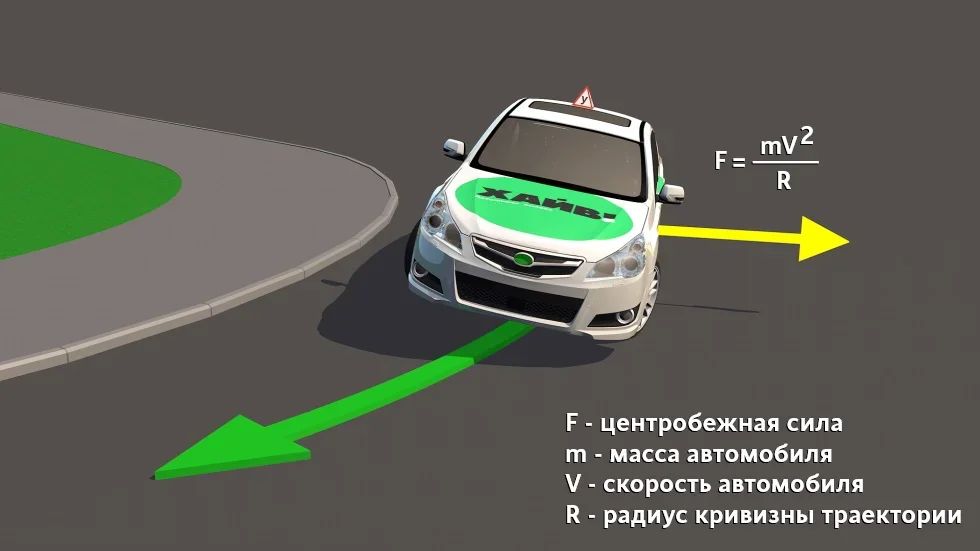 При повороте на автомобиль действует центробежная сила, которая стремится вытолкнуть его наружу поворота. Она зависит от: